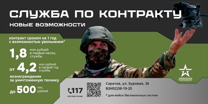 Подробнее узнать о службе по контракту можно обратившись в пункт отбора: г. Саратов, ул. Буровая, д. 36. Подробнее по номеру: 8 (8452) 38-19-20 или 117.